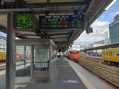 岩国方面へは、岩徳線経由。昼間は2時間に1本くらい。