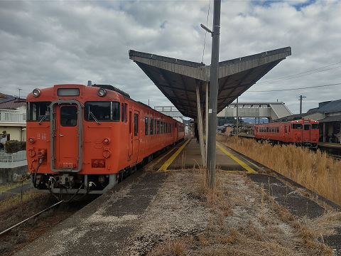 下り列車と行き違い。