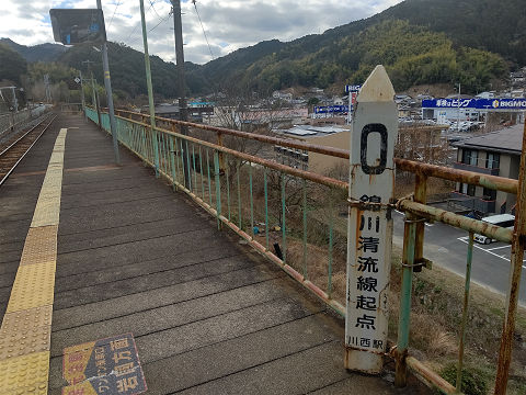 錦川鉄道・錦川青流線の0キロポスト。