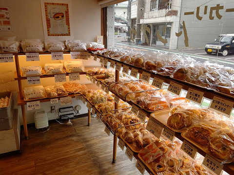 昔懐かしいパンが並んでいて、油パン、岡山コッペ、バターロールなどが人気。