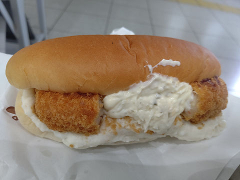 岡山コッペ(かにクリームタルタル)。ボリュームに圧倒される。タルタルソースの量が半端じゃない。このパン1個でお腹いっぱい。