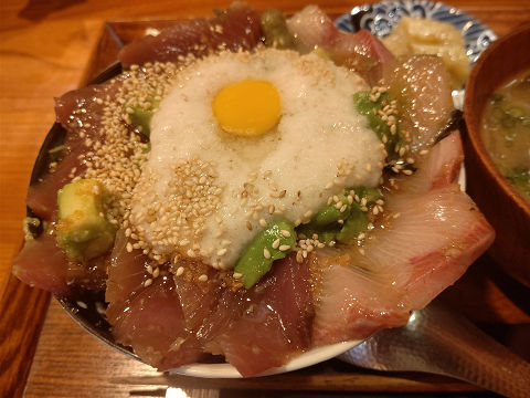 本カツオとブリ、アボガドの香味漬け山かけ丼(1,400円)