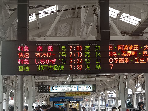 岡山駅7:10発のマリンライナー7号から修業スタート。