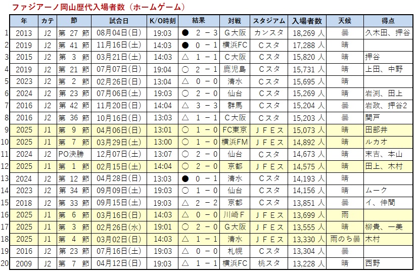 観客数発表でどよめいてたけど、岡山ホームゲームで15000人超えは通算9回目らしい。 pic.twitter.com/bzUZFEuFzn