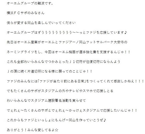 公式サイトにてリリースがありました通り、この度オーエム産業様よりビッグフラッグを贈呈して頂ける事になりました! https://t.co/QGJ3ncywmF pic.twitter.com/bi4iJQof4g