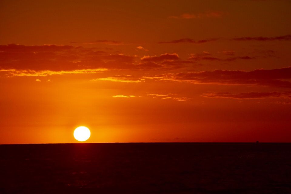 春分の日、目の前の海に沈んでゆく、最高の夕日でした。