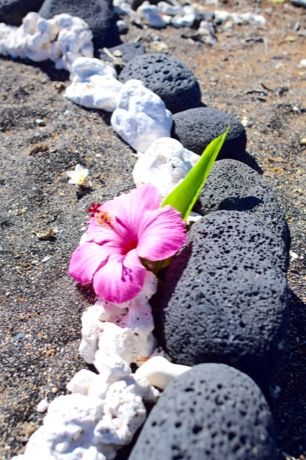 この日の朝、ゆうきちゃんが摘んでくれたハイビスカスとプルメリアを捧げ