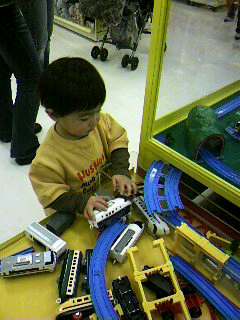 ◇20w0d◇ 今日でもう6ヶ月になりました。お腹も結構大きくなってきたなぁ~と自分では思うのですが冬で着膨れているせいか周りからは全然目立たないねぇ~なんて言われます。元々ぽっちゃりしてるからかな。+-+-+-+-+-+-+-+-+-+-+今日は天気がよかったので中庭で遊ばせようとお外へ出ましたが、とっても風が強くて諦めて再びアピタへ行きました。今回もプラレールコーナーでしばらく遊んでから隣のおもちゃコーナーへ移動して遊んでいました。私からは見えにくい位置に移動してしまったときrenの泣き声が聞こえました。そばまで行くと一層激しく泣き出したのでとりあえずその場を離れました。少し落ち着いてから聞いてみると近くにいた女の子に頭をたたかれたらしいんです。たぶんrenがその子が遊んでいるおもちゃに触ろうとしたりしたんだと思うんですが今まであまりこういうことってなかったのでびっくりしちゃいました。↑プラレールコーナーにて+-+-+-+-+-+-+-+-+-+-+仕方ないので有料のプレイルームへ移動して遊ばせることにしました。20分で帰るはずが20分経っても帰りたがらないので追加料金を払って1時間以上遊ばせました。おかげでお昼ご飯の時間はずいぶん遅くなってしまったけれどrenはどんぶり2/3杯ぐらいのごはんをモリモリ食べました。食べ終わる頃には疲れて眠くなってきていて「抱っこ~、帰る~」と言うので食べ終わるとすぐに車へ向かって帰ることにしました。駐車場から出る頃にはすっかり夢の中のren。自宅近くのスーパーまで移動して駐車場で30分ぐらいお昼寝させました。+-+-+-+-+-+-+-+-+-+-+今夜は2泊3日で出張に行っていたpapaが帰ってきます!renも喜ぶだろうけど果たしてrenが起きてる時間に帰ってこれるのかしら???無理かな。。
