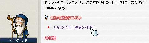 第二部開始ー(・ω・)ノ さて、エルナスのクエストもほとんど終わりましたのでいよいよ古代の本にとりかかろうと思います(`・ω・´)新大陸実装時からある由緒正しき高難度クエスト。クエストとクエストが複雑に絡み合いオルビス⇔エルナスを何度も往復させられる非常に忍耐を要するクエストです。マガティアの暗黒の魔法使いと並んで2大クエストですな。このクエストは移動が多いので、あらかじめ世界旅行をオルビスに設定し、魔法石の書をいくつか用意しておきましょう。もちろんいちご牛乳と普通の帰還書も忘れずに。オルビス→エルナスは魔法石の書→帰還の書と使えばOK。エルナス→オルビスはいちご牛乳→スピネルに送ってもらえば楽です。今でこそ世界旅行や魔法石の書があるけど、実装当初は全て徒歩移動だったんだよなー というわけで、おじーちゃんから話を聞いて、まずヘラーなる人物を探すことに。手がかりを求めて一旦オルビスへ。そこで話を聞いて再びエルナスへ。さらに話を聞いてまたもやオルビスへ。さらにさらに話を聞いて三度エルナスへ。さらにさらにさらに話を聞いてまたまたオルビスへ。この時点で疲れるわヽ(`Д´)ノ ,.、,、,..,、、.,、,、、..,_ /i ;'`;、、:、. .:、:, :,.: ::`゙:.:゙:`''':,'.´ -‐i '、;: ...: ,:. :.、.∩.. .:: _;.;;.∩‐'゙  ̄  ̄ `"゙' ''`゙ //゙`´´ | | //Λ_Λ | | | |( ´Д`)// <うるせぇエビフライぶつけんぞ \ | | / / / __ | | __ \  ̄ ̄ ̄ ̄ ̄ \ ||\ \ ||\|| ̄ ̄ ̄ ̄ ̄ ̄ ̄|| || || ̄ ̄ ̄ ̄ ̄ ̄ ̄|| お婆の依頼もあって四度エルナスへ。魔法石の書がガンガン減っていく(´・ω・`) アイテムだけ拾ってオルビスへとんぼ返り。しかもこの婆、街の中じゃなく雲の公園に居るからめんどくさくて仕方が無い(゚Д゚メ)その後オルビスの街へ戻るわけですがその前に付近のフィクシからアイテムを集めておきましょう。そのまま街に戻ってしまうとまた来なければいけません。街に戻ってクリエル(だっけ?)からフィクシのETCと交換でアイテムを貰います。 そしてさらに婆の元へ。ここまで移動してくるのが激しくめんどくさい( ゚Д゚) そして婆からアイテムを貰ってようやくヘラー絡みのクエストが終了。かなり駆け足で進んできたけど長かったorz とりあえず今日のところはここまで。明日で恐らく終わらせることが出来ると思うんですが…こんだけやってもまだ4割ほどしか終わってないんですよねぇ(;´Д`) なんだこのクエストの数はw 今日の戦利品書:魔法防御マント10% ジャンプ靴60% 防御全身60% 素早さ靴60%経験値:Lv127 76,54%→Lv127 77,88%押してもらえると喜びます→