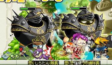 どもども、蓮です。まずはお知らせ35000HIT達成しました(・∀・)いつもながら見ていただいてる皆さんには感謝です。 さて、今日はアップデートの日だったんですね。一応公式のほうも見てみましたが、今ひとつ「これ!」といったものがありませんね。しいて言うならワールドボスレイドでしょうか。しかしこれもチラッと聞いた話では10kダメージとか平気でぶちかましてくる奴が出てくるらしいですが…まぁ、やってみないと分かりませんけど(・ω・)GW期間中は経験値とドロップ率が2倍になったりもするようですが、ドロップ率は終日だからいいとしても、経験値は20時~21時の間なんで、時間的にどうでしょうねぇ。19時半ぐらいからINして狩場を確保できれば一番いいんでしょうけど、時間的にそれは難しいですよ。連休中は遅くなる仕事がチラホラあるので余計に…(-ω-)それと、今回のアップデートでセキュリティソフトが変わりましたね。今までのゲームガードから、ハックシールドになりました。ゲームガードはいろいろと不評でしたからねぇ…で、このハックシールドですがSS撮影ソフトが使えないorzんですよね(´・ω・`)私は今までccclipというソフトを使っていたんですが、撮影しても真っ白にしか写らないんですよ。とりあえずメイポ付属のSS機能を使ってみたんですが、やはり使いにくいですね。画像自体も少し劣る感じですし、何より撮影した瞬間に1秒ほどラグるのが一番の問題。高Lv狩場で1秒のラグは結構問題です。戦士とか魔ならいいんだろうけどねー と、いうわけで 探してきました(`・ω・´) KIOKUというキャプチャソフトなら撮影可能です。最初の設定のままでは撮れないので、「設定」→「オプション」と進み、「ラグナロクオンライン2対策モードで実行する」にチェックを入れておきましょう。こうすればハックシールドを突破して撮影することができます。後の設定は適当にやってください。 さて、一昨日の日記です。4月26日今日はお休みと言うこともあって、朝からIN せずに夕方からやってました。別に予定は無かったんだけどオフゲやってたらメイポする時間が無くなっただけのことです|ω・) とりあえず夕方のSDT直前にINしたんですが、もう今日は迷わず時間の神殿へ。昨日の続きで守護兵狩りからスタートです。 昨日の段階で約700匹ほど狩っていたのでさほど時間もかからずクエスト終了。毎度の報酬を手に入れて止まらずに次へ突き進むヾ(*ΦωΦ)ノ どんどん行きますよ。120武器の材料を集めるには進むしかありません。 しかし、流石に守護隊長は手ごわい。接触で1300とか行きますよ( ゚Д゚)まぁ、斬りはメルガのおかげでダメージ半分なんでいいんですが、他の職だと2600程度ですか。一番回復しにくいダメージですよね。いい加減3000回復のアイテムを出してもいいと思うんだ(・ω・) ペシペシ狩ってるとなんか飛んできた!Σ (゚Д゚) しかもわりかし長い!Σ (゚Д゚)Σ (゚Д゚) ここに来てまさかの新スキル。黒い錐を飛ばしてくるとか、お前はどこのゼロスだヽ(`Д´)ノ ちなみにこの錐あんまし痛くなかったりします(・ω・)これよりハッスルやパワーゲイザーのほうがよっぽど痛いんだが…特にゲイザーは1800近く喰らうこともあるしねぇ。2発で落ちるわい( ゚Д゚) ちなみに、錐は実弾系なのでしゃがめば避けれます(・∀・)しゃがんだ所を狙われるとムリポだけどね|ω・) そんなこんなでSDT終了まで狩って一旦落ち。夜に再びINしまして夕方の続きから(・ω・)すでに600匹ほどは倒していたのでそんなに時間もかからずさっくり終了。っても40分ほどはかかってるけどね。 管理人の所へ戻りクエストを終わらせて次なるクエストを受けておきましょう。 無理だ!(゚Д゚ ) 倒せる倒せないの前に沸いてませんよ(´・ω・`)ま、また日曜の朝にでもやることにしましょうかね。 今日の戦利品カード:後悔の守護兵*1 〃 守護隊長*1マスタリ:スタンス30経験値:LV128 3,10%→Lv128 61,41%押してもらえると喜びます→