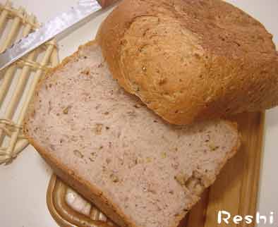 雑穀パン♪美容によいですねー♪雑穀のブレンドによって、栄養も見た目の色も全然ちがいますが、みなさんのお気に入りの雑穀はなんですか?今回、私は、十六雑穀(十六の舞)を使いました。黒米や赤米の比率が高いので紫色のご飯が炊けます。パンもほんのり紫でした!くるみ入りの雑穀パンにしてみました!レシピは、シェフズ米の雑穀パンと基本的には同じでーす。雑穀くるみパンのレシピ■材料(1斤分)強力粉・・・・・250g(1WC)三温糖・・・・・・20g塩・・・・・・・・・・5gマーガリン・・10g水と雑穀ご飯あわせて・195g(雑穀・80gで作成)ドライイースト・・3gくるみ・・・・50g雑穀パンの特徴雑穀米100%をやわらかめに炊いてパンに入れました♪おかゆほどではなかったです。くるみとの相性も抜群☆■作り方(食パン4時間コース)イーストは所定の場所に、くるみは自動投入または、ミックスコール。他の材料はパンケースに入れて、スイッチポン♪あとは、ホームベーカリーにおまかせでできあがり♪2008.3.28UP ナショナルホームベーカリーSD-BT103で作成雑穀パンのレシピ・作り方シェフズ米の雑穀パン生雑穀米失敗レシピ十六の舞 雑穀パン黒米粉パン米粉パン(黒米入)雑穀米のレシピ雑穀あんこもちシェフズ米おこあ雑穀オムライス雑穀水餃子雑穀焼き餃子 最大10倍!ポイントアップ祭り 2008年3月31日(月) 9:59まで 【ホームベーカリーのレシピィ】無料メルマガ ホームベーカリーレシピ集