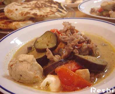 カレー~~~~~~~~~~ カレー~~~~~~~~手作りナンとグリーンカレーの夕食でした!ナンは私がホームベーカリーで準備して、アニキに焼いてもらいました。焦げ具合が香ばしくてよかったよー。→ナンのレシピはこちら今日も、燃え尽きました!!!!【タイムセール】激辛!メープロイ・タイカレーペースト50g(4人前)