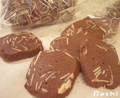 クッキーってちょっと苦手なのですが、今日のはおいしくできました♪形が相変わらず雑でしたが、ラッピングして先輩にプレゼントしました~。コーヒー飲みながら、子供の話で盛り上がりました。先輩は今度海の見えるお気に入りのレストランに連れて行ってくれるそうです♪やっほ~~~っ♪楽しみにしてまっす!ココアアーモンドアイスボックスクッキーのレシピと作り方サクサクかる~~い食感のクッキーです♪■材料・バター・・・・・80g・マーガリン・・60g・砂糖・・・・・・60g・卵・・・・・・・・・1個・薄力粉・・・・・・・・・150g・ココア・・・・・・・・・・・20g・コーンスターチ・・・・・・30g・ココナッツミルク・・・・30g・ベーキングパウダー・・・3g※アーモンドスライス・・・60g■作り方フードプロセッサーでアーモンド以外をよく混ぜる。羽根をはずしてアーモンドを混ぜる。四角く成形して冷凍庫で凍らせ、カットする。180度で15分、160度に下げて5分焼き、厚めなのは更に焼く。底部分を触って柔らかいと焼きが足りないみたい。焼けたらアミの上で冷ませばできあがり♪2008.4.21UP クイジナートフードプロセッサーとスチームオーブンで作成アイスボックスクッキーは作って冷凍しておけば、食べたいときにカットして焼くだけなので便利です♪ケーキとクッキークッキーの本だからクッキーが大好き 調理家電のレシピィTOPへ ホームベーカリーケーキレシピ