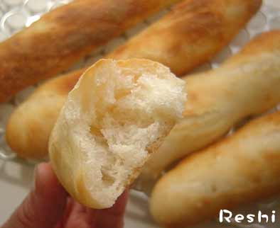 フランスパンっておいしいですよね~♪大好きです!でも、自分で成形してまともに作れた事がまだないのでありました。クープが開かないのですよー。今回も、切っても切ってもじぇんじぇん開かないのー。今回のフランスパンは、ガーリックた~~~~っぷりしみ込ませたマーガリンをつけて、ガーリックトーストになりました。まいう~~~♪お家くっさ~~~い!^^;修行が足りないフランスパンの作り方・レシピ■材料(4本分) 強力粉・・・200g(1WC) 薄力粉・・・80g 砂糖・・・・10g モルトパウダー・2g 塩・・・・・6g 水・・・・・200g レモン汁・・・2g パネト-ネマザー・・・12g■作り方パン生地はホームベーカリーのパンこねコースでつくりました。材料を全部入れてスイッチ押すだけです。パネトーネマザーも最初から一緒に入れます。生地ができたら、4等分して棒状に伸ばします。天板にオーブンシートを敷きその上に、成形したパン生地をのせ、スチーム発酵 35度で40分くらいしました。(発酵と予熱したりで、成形してからオーブンにいれるまで約1時間かけました。)220度のオーブンでク-プを入れて15分焼きました。(最初の10分スチームを入れる)2008.4.15作成4.18UP ナショナルHB(SD-BT103)とスチームオーブン(NE-SS30)で作成ホームベーカリーの場合、1斤あたり12g~14gを小麦粉と一緒に最初から入れます。予備発酵・種起こしは不要です。下記のパネトーネマザーNは、はるゆたかを中心にした北海道産小麦粉で培養された、こだわり食材さんオリジナルです。パネトーネマザーN 200gパネトーネマザーは、ホームベーカリーで手軽に天然酵母のパンが焼けます。→ナショナルホームベーカリー安い順フランスパン(パネトーネマザー)は、続編に続く・・・まともに焼けるのはいつの日か?ポイント最大10倍!お得なお店をチェック!4月21日(月)9:59まで> 調理家電のレシピィTOPへ 手作りパンレシピ パネトーネマザーパンレシピ