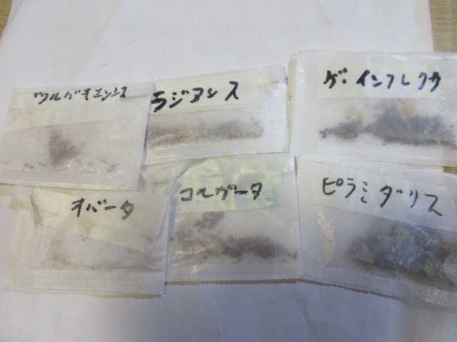 ラペイロウジア・ピラミダリスとゲイソリザ5種の種採りが終了しました。ことしはツルバキエンシスとオバータもタネが採れました。タネを蒔いてみたいという方がいらっしゃればご一報ください。その中でラディアンスのタネ、左が今月採れたもの、右が昨年5月採種したもの。今後水分が抜けて右のと同じぐらい小さくなるのか、いやそこまでは変らないだろう。昨年もブログで「買ったときは粉みたいに小さなタネだった」と書いたような気がします。球根の栄養状態によってタネの大きさも変わるということでしょうか?ラペイロウジア・ピラミダリスの球根を掘り上げてみました。分球はせず4球が4球のまま、多少は大きくなったのか?タネの採りすぎで増えないのか、もともとの性質なのかわからないけどやはり増やすにはタネを蒔くのがいちばんいいですね。