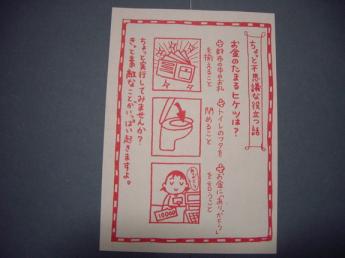 いつも、クスリ・タツミってとこから、洗顔フォームを送ってもらってるのですが~~ノニのパウダー洗顔フォームで、しっとりすべすべになるんです~~その時、こんな紙が入っています。イラストも可愛いし、なんかほっておけなくて、机のひきだしに入れてあります。どれだけ信憑性があるかはわかりませんが・・・財布の中身をそろえる> 確かに、あっちこっち向いてたら、気分悪いかも。だけど、結構、ぐちゃってなってたりするりぼんのお財布です。時に、レシートが折れ曲がってはさがってたり(--;足元きっちりするのと同じで、お財布の中身もきちんとしなきゃね。トイレのふたをしめる> 次に入る人のこと考えたら、ちゃんとしめてるにこしたことないですよね。けど、外のトイレでは、しまってると、自分の手であけないといけなくて、いくら綺麗なデパートのトイレでも、一瞬躊躇してしまうことも・・。トイレ内で、手を触れるのは、必要最低限であってほしいからねぇ。今は、自動開閉ってのがあるから、それはとってもありがたい!お金にありがとう> って、考えてみれば、大事なことかもしれませんね。お金が全てとか、お金さえあればいい、ってんじゃないけど、大事にしなきゃいけないものだし。感謝の気持ちを忘れてはいけませんよね、きっと。お金がたまるたまらないじゃなく…日常の些細なことに目を向けてみましょう~っていうことなのかもしれませんね。けど、これでお金たまったら、めちゃ嬉しい(!? 笑)