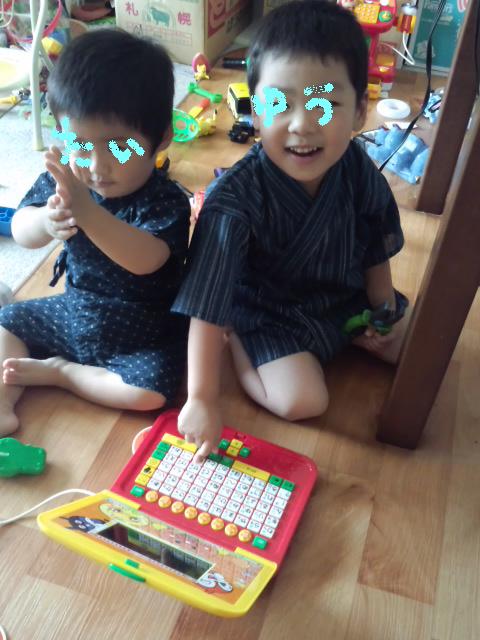 ひっさびさの更新。ゆうちゃんは幼稚園夏休み中。兄弟2人で遊んでいてくれるので、私は意外と楽かも毎日我が家は賑やかです。今日は久しぶりの雨なのでお家でゆっくりしています。とうことで久しぶりにミシンがけ長男ゆうちゃんの甚平作り再開しました☆実は、去年の夏に裁断し、そのまま放置されていた可哀想な甚平の生地なのです。。。ゴメンネ。お祭りの服(甚平)きたーーーいと、ゆうちゃんに今朝言われたので急いで完成させました。1時間くらいで出来てしまった!!!なんて簡単なのでしょう!ゆうちゃん、とっても喜んでくれましたゆうちゃん今年ジャストサイズ!来年用もまた作ろう♪ちなみに、たいちゃんの甚平はゆうちゃんのおさがり。お友達からいただいたものです。7日に子育てサロンで七夕まつりがあるので2人にこの甚平着せて参加します楽しみ北海道の七夕は8月7日。1ヶ月遅れなのです^^