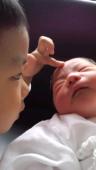 タイちゃんが産まれ、(兄)ユウちゃんは赤ちゃんがえりをしています。10月に魔の(!?)2歳にもなり、イヤイヤ期も絶好調産後すぐ、ユウちゃんは赤ちゃんに対して叩いたり、物を投げつけたり、爪を立てて引っ掻いたり…ほんと目が離せませんでした。。。タイちゃんの頭やお腹を平手でバシっと叩いたり、(ユウちゃんは力があるので叩かれると大人でも結構痛い)「握手~☆」と言いながら優しく手を握ってたかと思えば急に爪を立ててタイちゃんの手の甲に傷を作ったり、大きな車のおもちゃを寝ているタイちゃんの顔に投げつけたり…どうしてーーーーユウちゃんはなんでこんなに赤ちゃんいじめるのと悩みました。ヤキモチ妬いているんだなとはわかるけどその行動をどう止めたらよいのか解かりませんでした。叩いたりする度「ダメだよー、叩いたら痛いんだよ」と怒らずに言い聞かせていたのですが全く聞いてくれません逆に余計赤ちゃんを叩きにきます。。。タイちゃんの1ヶ月健診の時に小児科で相談したら、「ママにかまってほしいから、そういう行動をとって気を惹いているだけなんですよ。なので、そういう時は無反応でいてください。」「無視してその場から赤ちゃんを離してあげて。」と。その後、教わったとおりやっていたら本当にやらなくなりました心配事が無くなりホッとしています。今はタイちゃんがおっぱい欲しくて泣きはじめた時、先に私のヒザの上を占領して甘えてきますカワイイ。