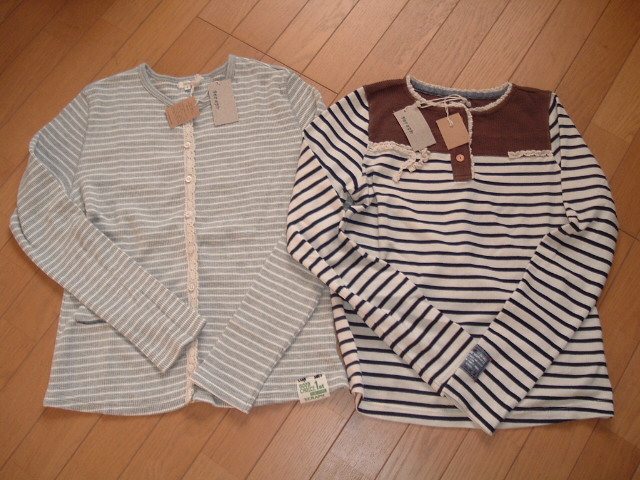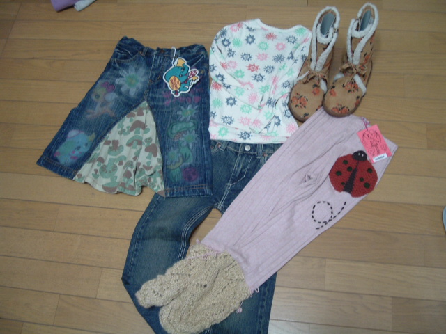 お兄ちゃん140cmのネタバレです。ボトムおおめと書いてみたら、DDのボトムが2本入ってました。後はストアーズの長T文句なないけど、140cmだと単価が高いから数がすくないなあ。全部で26000円ほどでした。もう一点あればよかったなあ。