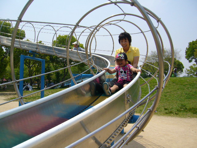 こんばんわ今日はGW三日目のお話です。お昼前からお弁当屋さんでお弁当を買って姫路市にある御立交通公園に行きましたおもしろ自転車や遊具・小さい子向けの乗り物までありひろ~い公園です鈴ちゃんは遊具のローラ滑り台や普通の滑り台を何回も滑ってましたペットの散歩やテントをはってお勉強してる子などたくさんの子供達でいっぱいでした