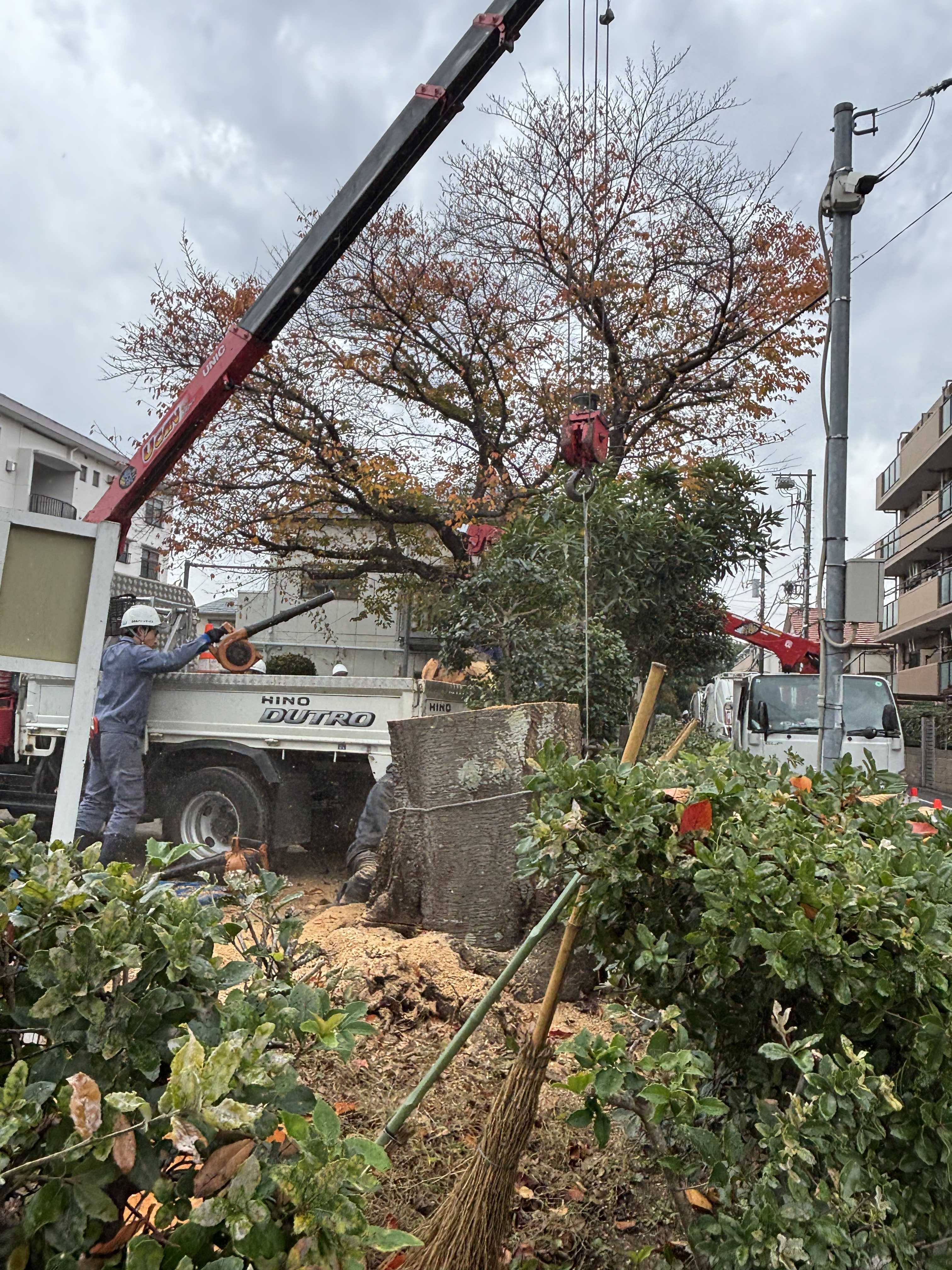 公園、大木が切られた。