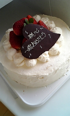 今日はお友達から1歳になった瑛心君へお祝いケーキです 幼稚園でもちょくちょく会うことはありましたが・・・ もう1歳になるんだ~とびっくりです 子供の成長ってホントに早いなぁ~って ケーキを届けた時はお熱でちゃってたみたいで ちょっとぐったりしてたけど・・・大丈夫だったかな・・・ でもほんとおめでとぉ~瑛ちゃん
