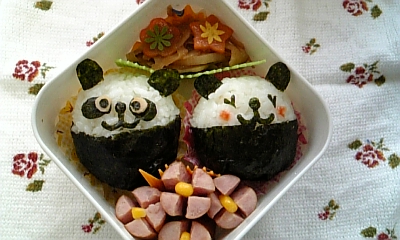 今日は特別これっていうのもなかったので雄に聞いたら・・・ 『パンダ~』 動物弁ならイケるかな この日はスポーツもあるしご飯多めと思ったら大きすぎてはいらない 違うお弁当箱に変更なんとかおさまったやれやれ
