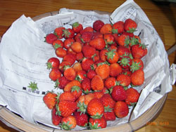 わたし、ほんとうにいちご大好きなんですどんな美味しいランチより、立派なお肉よりいちご・いちご・いちごザル1杯なんてへっちゃらよ~じいちゃんから(父)、そろそろ赤くなりはじめたと聞きいちご畑へGO もう少し赤くなればいいんだけど待てずにこれだけ収穫今日も天気がいいし、どんどん赤くなるよ。 りんは、いちごが嫌いなの・・植えるお手伝いはするんだけどね。でも、このあいだ「今年は2つ食べてみる!」って宣言さあ、食べてもらいましょうかdesigned by