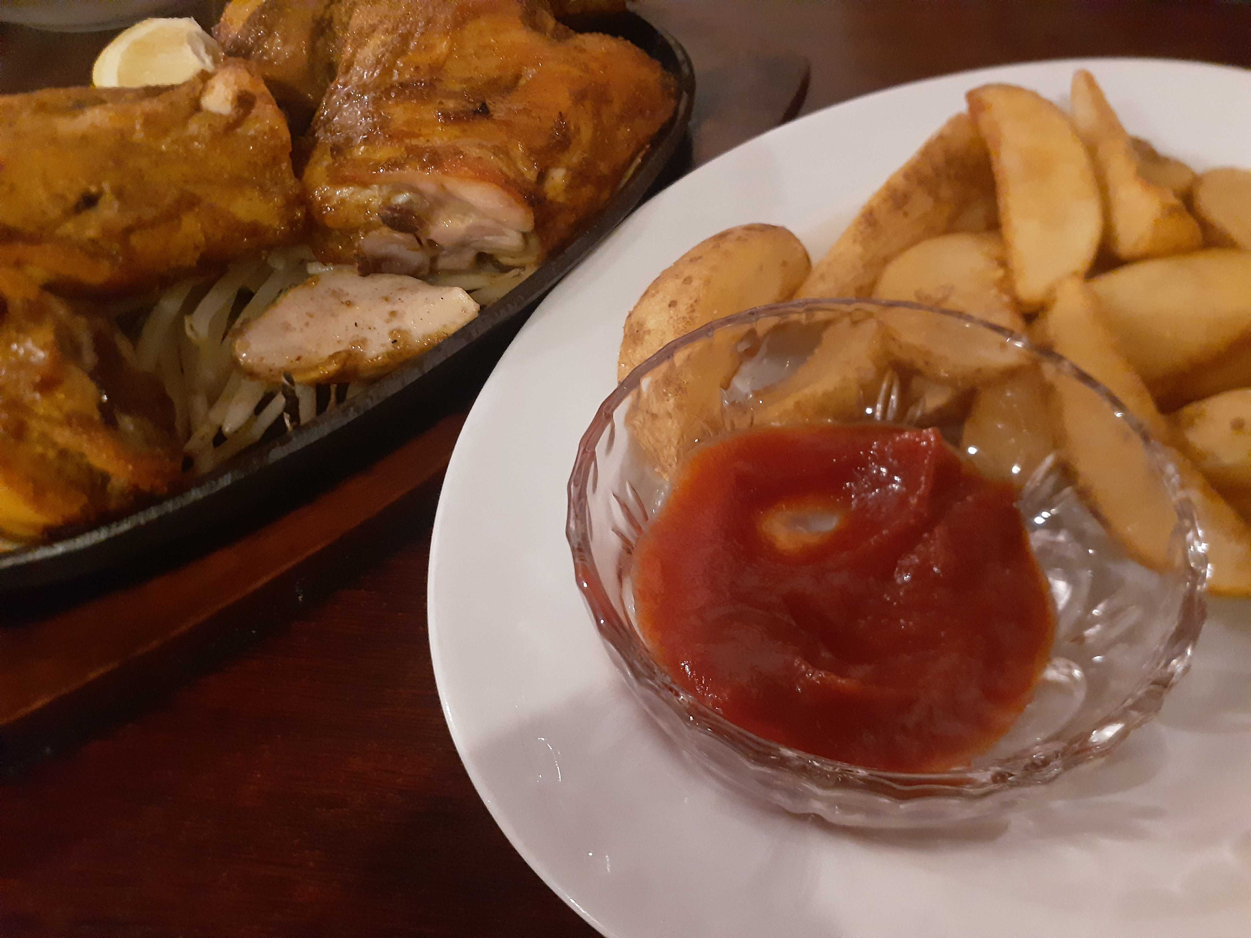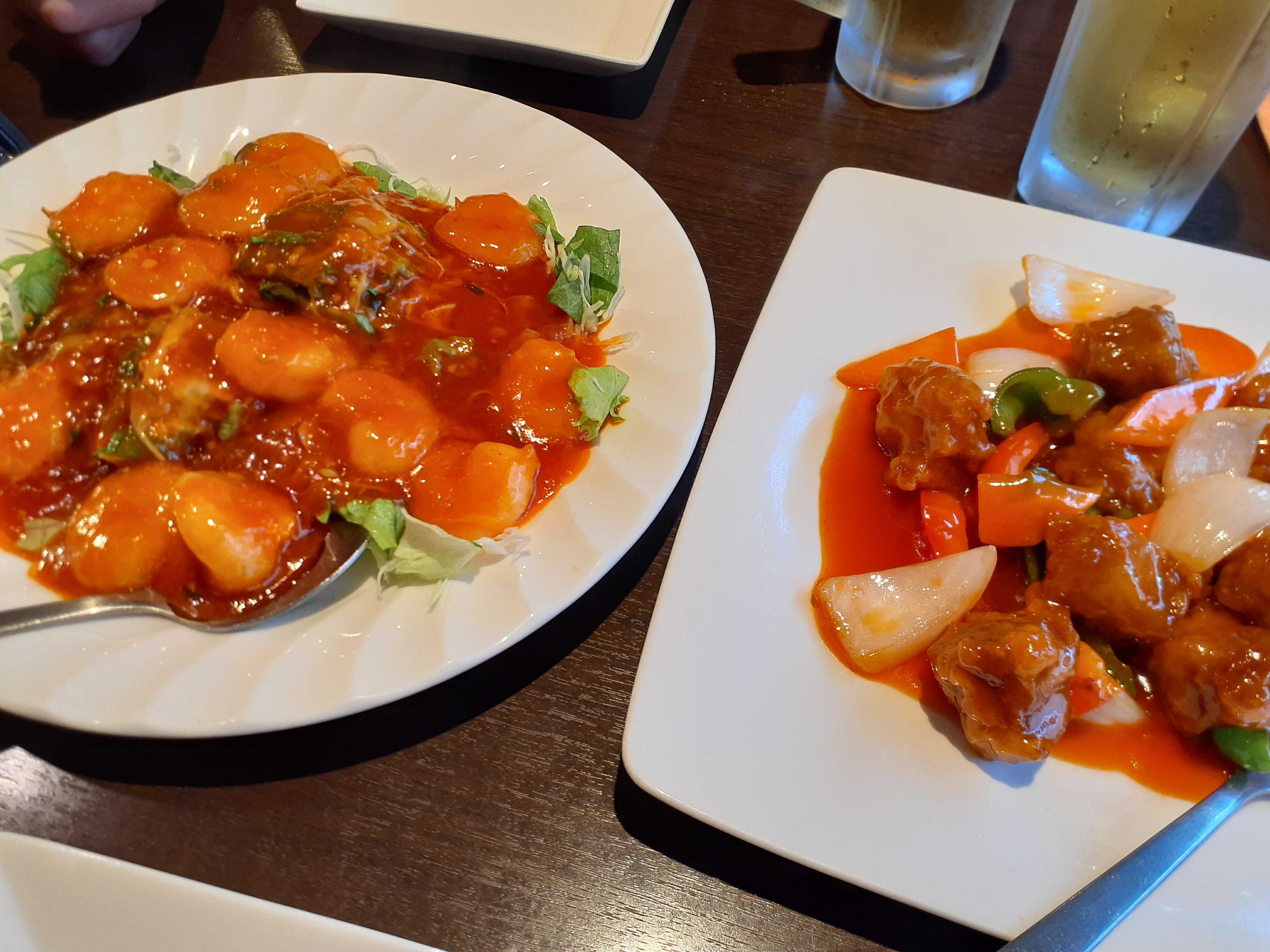 今日もいつもの朝です。先週怪我した父は翌日病院に行き、傷を診てもらいました。縫うまではいかないらしく母とほっと一安心。消毒しに通院中です。よかったよかった。土曜日~。雨~超雨~。でも大変お世話になった大叔母さんが亡くなり49日。納骨には行けないのでお菓子を母に持ってってもらおうと船橋へ。船橋ったら角上も寄るよね~って事でちっちゃなクーラーバッグ持ってった。なんか崎陽軒のシウマイも美味しそうだったから買って、クーラーバッグぱんぱん。で、いつもならお家に帰るところそのまま最寄りの駅をスルー。今日はお昼中華します!ホットペーパーのポイントが5月31日までで2,800円のポイントがあるのだー!ひゃっほー。この前温野菜行った時、偶然ポイント還元祭がやってて2,500ポイントげっと。もったいないもったいない。って事で今回ポイント消費。主人とはお店のある駅(最寄りの隣駅)で合流。お店の名前はね...なんか読めない名前んとこ(笑)ヒリヒリ狙った訳ではないけど、1,408円コースを2つ予約。雨も風も強かったからかお店には一番乗り。このコースはお一人お酒1品、前菜1品、メイン1品注文できます。色々悩んだ挙句、調子に乗ったね...ひゃっほー!エビチリ!やっぱ中華は酢豚!??な~んて...調子に乗った結果、味が似てる物注文するという...色も似てる...普通に美味しいんだけどね。そんで結構ボリューミー!!前菜は砂肝とネギ合えたのと、リオがいないのに珍しくフライドポテト。揚げ物摂取しとくかと。ポテトは私好みのカリカリ。砂肝もしっかりネギ入ってて美味しい。まぁこのおつまみの量でお酒は足りず2杯ずつ追加(想定内)最後は〆を1つ頼んでシェアしようとしてたけど、想定外に一品一品の量が多く断念。お会計は飲み物代だけで2,000円ちょい。ポイント様様!ご馳走様でした。そしてこの来店でまた500ポイント付いた。ホットペーパーめ...策士よのぅ。でも500ポイントだからなぁ~。ちょっと微妙だけどタイミング良かったらまた使おうっと。うまうまでした!