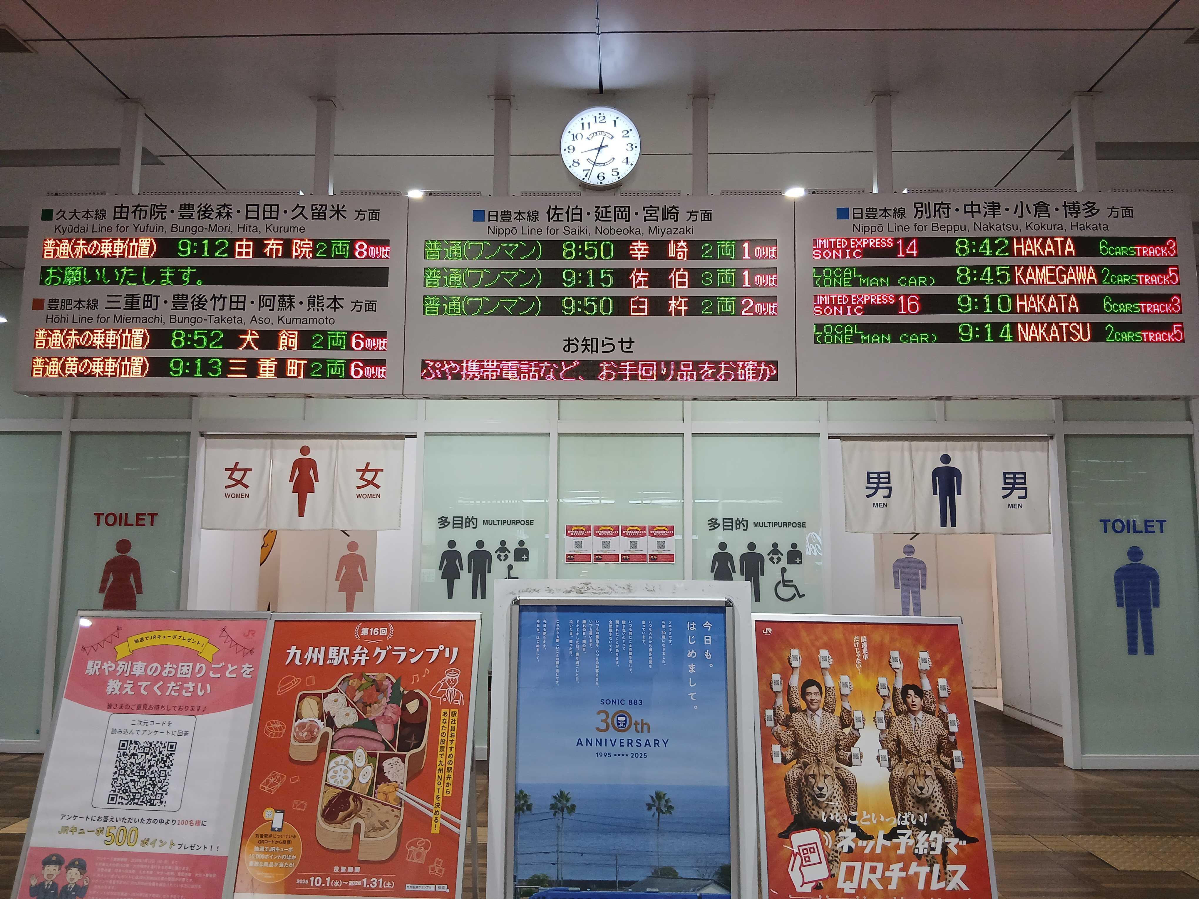 大分2日目です。丸々別府を楽しみます。地獄だー!温泉だー!大分駅に向かうと電光掲示板がめっちゃ九州(笑)しかもソニックっていう特急が1時間に2本も出てて見放題!鉄補給ですな。トイレもお風呂みたいでカワユイ。べっ!ぷぅう↑~!べっ!ぷぅう↑~!なんかイントネーションが違うのよね。別府。びっくり。別府駅からは別府を牛耳っているであろう亀の井バスで巡ります。(大体が亀の井)その為ミニフリー乗車券を購入。乗車券を買うのにお店が8時45分からしか開いていなかったので、予定してたよりちょっと遅め。とりあえず鉄輪(かんなわ。。読めないよね)で下車。またバスに乗り血の池地獄に向かいます。おっ!!おぉ!!!あれはメシドラカーではないか!!!(日曜日テレお昼放送)メシドラヘビーユーザーの我が家としてはドキドキ。満島君とかねちーいるかな?わくわく。でも、どうやら撮影隊みたいな感じ。数日前に遭遇情報がネットにあって、メシドラってよく雨降るから晴れバージョン撮りに来たのかな?おっさん乗ってた(笑)血の池地獄到着。初めに龍巻地獄に行っていつ噴出するか聞いてからこっち来た。後20分ぐらいだって。なかなか外人さんがどいてくれなくって(笑)やっとこさっとこパシャリ。いやぁ~別府来て地獄めぐり来て外人さんが多いこと多いこと。噴出!!結構時間通り。上に屋根みたいなのがあってこれ以上出ちゃわない様にしてる。出ちゃった方が凄そうなのにね...ってリオと言ってた(笑)またバスに乗り鉄輪へ戻ります。バス待ちの間おやつのじゃりぱん喰らう。砂糖がじゃりじゃりしてて美味。ここから歩いて地獄をめぐりますよー!結局今日も歩くのさ。温泉の水族館があってアロワナとかいた。金魚もキモチ大き目。温泉パワーかな?プリン大福ってなんだ?ちょっとお高め。どうするどうする?って悩んでたら、隣で外人さんの団体が金箔ソフトクリーム食べてた(笑)むむ!約2,000円だぞそれ!こっちも買ってやらぁ!散財だ!散財だ!こちら約600円。わらわか~い。餅というより羽二重餅な感じ?地獄蒸しが有名らしいんだけど、ちゃんとしたお店は混み混みなんだって。避けた。そしたら途中でプチ地獄蒸し発見。やっぱ卵だよねー!キモチ塩味がある感じ?アジシオのせい?鬼山地獄はワニがいます。めっちゃいます。はい。かまど地獄はプチ地獄めぐりみたいな感じ。赤い地獄も青い地獄もあったし。最後に結構大き目な足湯があったけどいも洗い状態足湯でした。こちらはかまど地獄の途中。紙コップを買うと温泉水飲める。ほんのり塩味のある硫黄の味みたいな味。お茶飲む様に普通に注いじゃって並々。3人で回し飲み。地味~な鬼石坊主地獄。多分坊主が頭出した様な形のポコポコが見えるから?とっても静かな地獄でした。最後は海地獄。湯気が温泉のマークっぽくない?人がいっぱい。大人気だね。人はなぜスタンプラリーの紙を渡されるとやりたくなるのだろう...イエイ!コンプ!(家帰って来てから写真撮った)極楽饅頭です。ちっちゃな一口。形もまばら(笑)こちらも塩味強めの甘さ。温泉で蒸すとそうなるのかな?お腹も空いてたしあっという間に食べちゃいました。海地獄のバス停から紺屋地獄前へ。ミニフリー乗車券活躍!ここは弟が良い!と言っていた泥風呂の温泉。泥のからみつきかたに動物的な色気があるらしい...↑なんかね!凄かった。下に泥が沈殿してる感じで掬うと水分多めの泥がこんもり手のひらに。始めどちら様かの髪の毛がくっ付いてて「ヒっ!」ってなったけど、お風呂の端っこの泥を掬うとめっちゃ綺麗な泥。パックはしない方がいいって書いてあったから、顔はやめたけど腕とかには綺麗な泥でねちょねちょしちゃうよねー。あと蒸し湯も良かった!人間地獄蒸しみたいな。先ほど食べた卵の気持ちが味わえます(笑)混浴は露店だったから一度入ったけど、男性陣が男湯だと思ってる(主人リオ共にそう思ってた)からみんなすっぽんぽんぽこりんで入ってくるんだよね。ちょい奥まで行くと見えそう。私はギリ見ないで済んだ(笑)女子は見えない場所があるからみんなそこで浸かる感じ。1時間程温泉にいてから、バスで別府駅まで戻って来ました。何かおじさん飛んでた。ちっこいおじさんも付いてた。足湯もあるけど、みんな温泉に慣れちゃったのか浸かる人はいなかった。熱海ならもっさりだよね。お腹空いていたので別府駅の周りを物色したけど、時間も中途半端でナッシング。途中リオがバス酔いと空腹と湯あたりと風邪気味と寝不足でグロッキー。先に大分帰るって。私達は別府駅と大分駅でお土産と軽く食べられる物、薬を買ってホテルに帰る。とりあえず美味し気な限定ポテチ買った。こめ油で揚げてるんだって。罪悪感がない感じの気持ちがする。リオもだいぶ体調戻ったんだけど、今宵の夜ご飯のお店も決めてなくってまた街をぐるぐるしなきゃならぬ。みんな疲れちゃってたしホテルめしでいっか!って事で決定。明日の朝ごはんはバイキング付けたし無理はせぬ。昨日コ