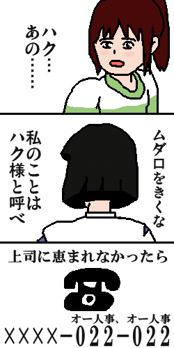 午後、何食わぬ顔で帰ってきたポッポ。 :「ねぇ~、私に言いたいことなぁ~い?」 (*´∀`)アハハン♪ : ・・・・・・・・・・・・・・・・・(-_-;) 「昨日の弁当、アレ蜘蛛だろ! すっげーキモかったから先に食ったw あと当分焼きビーフンは食いたくないww」 : (。-∀-)ニヒッ :「お前さぁ~、俺にそんな嫌がらせをしてそんなに楽しい? つーか、俺に構ってほしいのか?」 ( ̄ー ̄)ニヤリ♪ ポッポには通用しないのか?? God ~~、What should I have done in future? ント・・σ( ・´_`・ )。oO(悩)