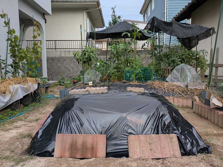 2025/8/19 (火) 15:55 ///写真手前が 4番目の菌ちゃん畝 3か月寝かせます 最高気温 32℃ さわやかな風が時々 汗ダクダクになりながら チョッと頑張りました 軒下で しっかり寝かせた菌ちゃんプランターには サラダビーツとターサイの種を蒔きました。トマトは 比較的問題なく育ってくれてフルティカ🍅とアイコ🍅 3㎏以上収穫 初挑戦の🥒 何の対策もしないで植えたら ウリハムシさんの標的となり 葉がボロボロそれでも かわいいサイズの🥒が3本ほど初年度は こんなもんかなと... 菌ちゃん農法で使ってはいけない有機物・米ぬか・家畜糞堆肥・野菜くずなどの生ごみ菌ちゃん農法に向かない野菜・畝の上に有機物が多く 大量栽培の種野菜には向かない ・玉ねぎ ニンニク ダイコン ほうれん草 青梗菜 ジャガイモなど 有機物が多い畝では 最初の発芽や活着が難しい