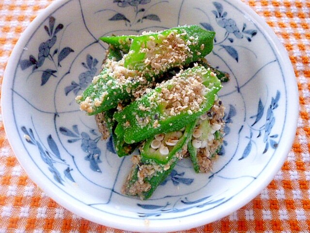 オクラのごま和え作者: あ——ちゃん■材料(2~3人分)オクラ / 1パック ( 80g )白ごま / 大さじ1★ヤマサ昆布つゆ3倍濃縮 / 大さじ1■レシピを考えた人のコメント簡単 一品 水 少量で ボイルOK!オクラのごま和え の つくレポ くっくこさん ありがとうございます