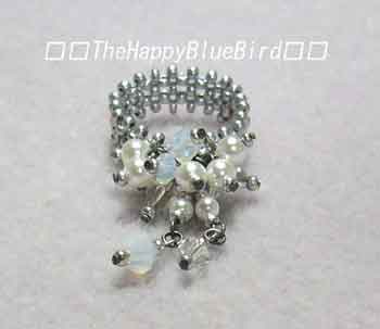 じゃらっとしたリングはなんどか作ったりしていたのですが、フリンジをつけたリングを目撃して真似して作ってみました。指にかかる部分は少し幅広にしてぐらぐらしないような形を目指して見ました。一応「ブーケリング」と名づけてみましたがイメージはあっているでしょうか?