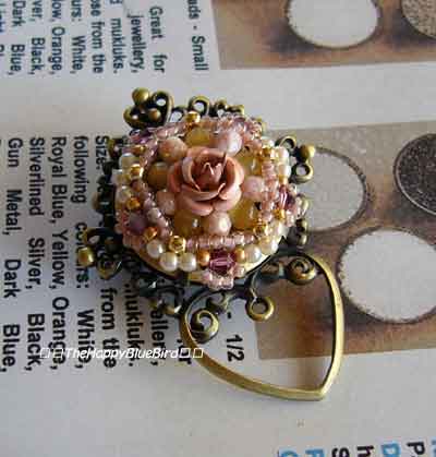 けっこうケチの私はキットはせいぜい2000円以内の物しか購入したことありませんでした。でもお正月ってことで約3000円もするキット購入しました。作って見てやっぱりかわいい♪本当はこれにチェーンをつけてメガネのホルダーとしても使えるってやつです。でもこれ自体結構な重さでその上メガネも掛けたらニットなんかではでれーんってなっちゃいますよね・・・。なのでこれはブローチって事だけで使ってます。