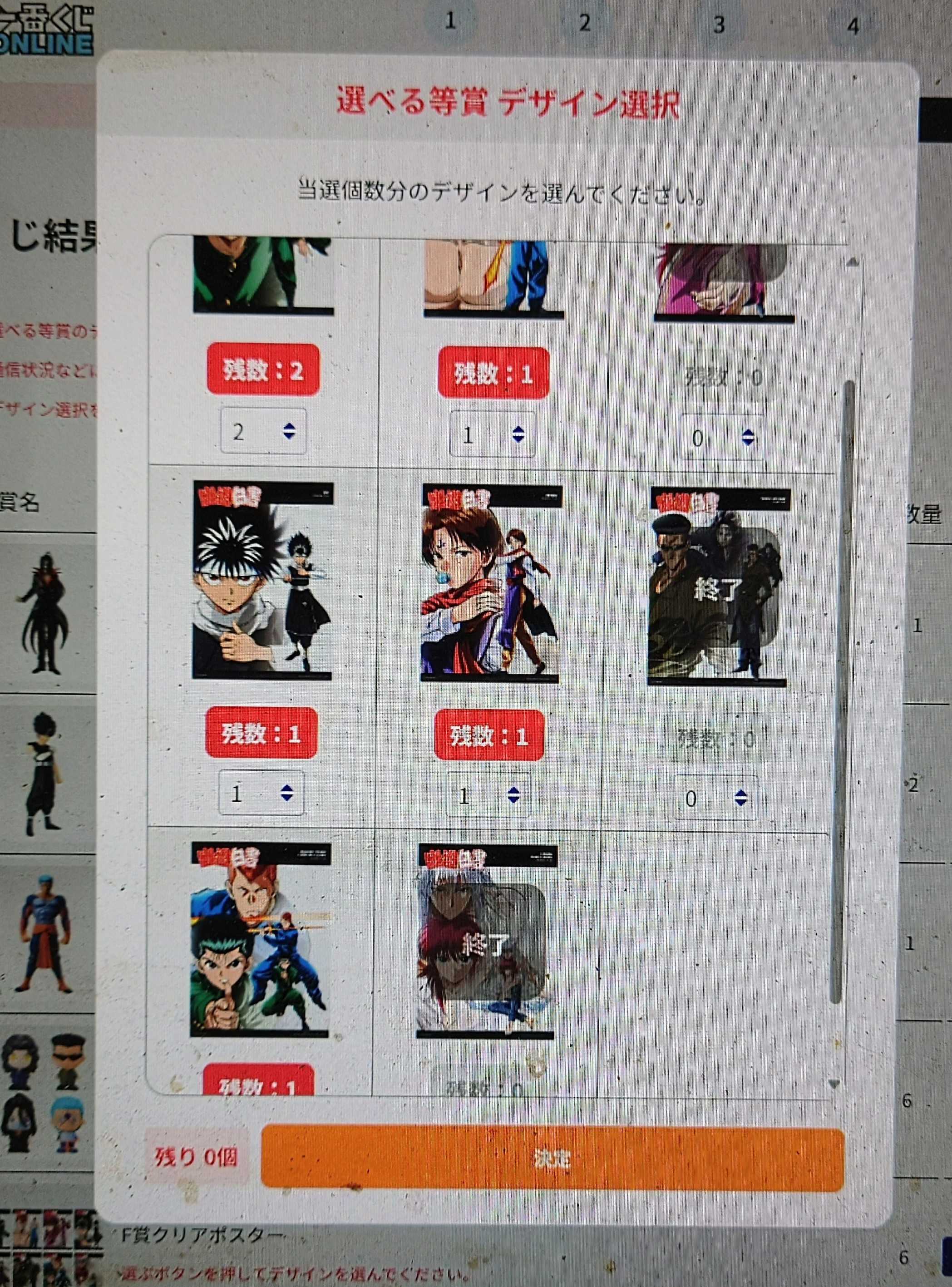 A賞 0 /2​ B賞 1/2 C賞 2/2 D賞 1/1 E賞6/20 F賞6/17 G賞9/18 H賞5/18