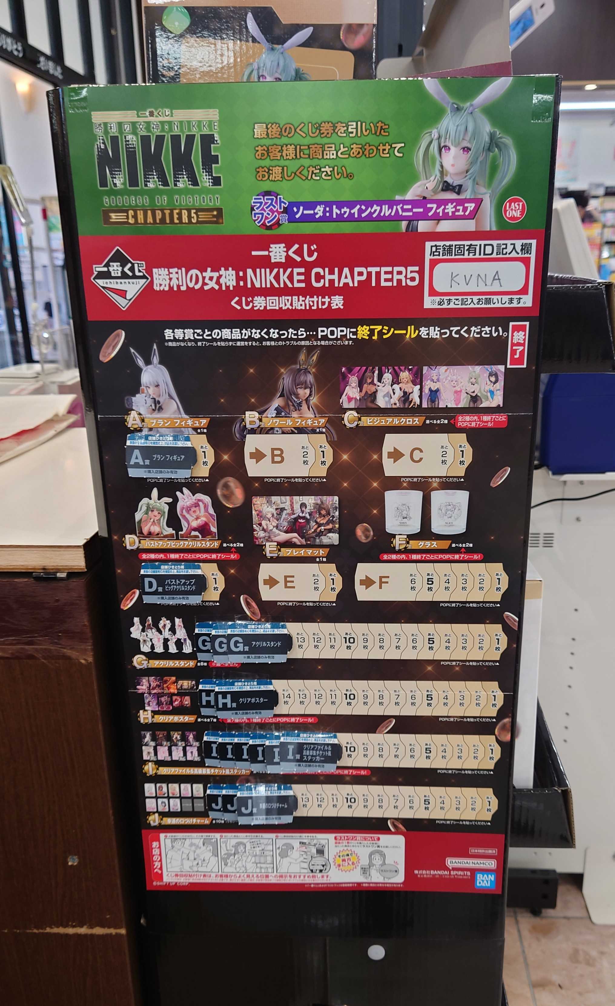 「勝利の女神:NIKKE CHAPTER5」HP8月2日 バニーの日今回の狙いラストワンソーダ:トゥインクルバニー フィギュアA B ブラン フィギュア ノワール フィギュア環境明屋書店 空港通店16本引かれて、A×1 旅立ちラスワンには程遠く、A&B狙いで挑戦【結果】13回何とか B賞獲得3/64≒/1/21 確率内には収まりました~Bノワール フィギュアなかなかエロ可愛いEプレイマットFグラスSODAGアクリルスタンド<※クローズド>SODAH クリアポスター ×3Iクリアファイル&ステッカー ×2ブラン ノワールJ幸運の口づけチャーム<※クローズド> ×4現状ラストワン賞が高騰していますが、A&Bは購入した方がかもネ…お次はドラゴンボール ASSEMBLE COLLECTION ~孫悟空少年期編~900円/回とお高いですが、ハズレ無しなので、少し引いてみようと思います。