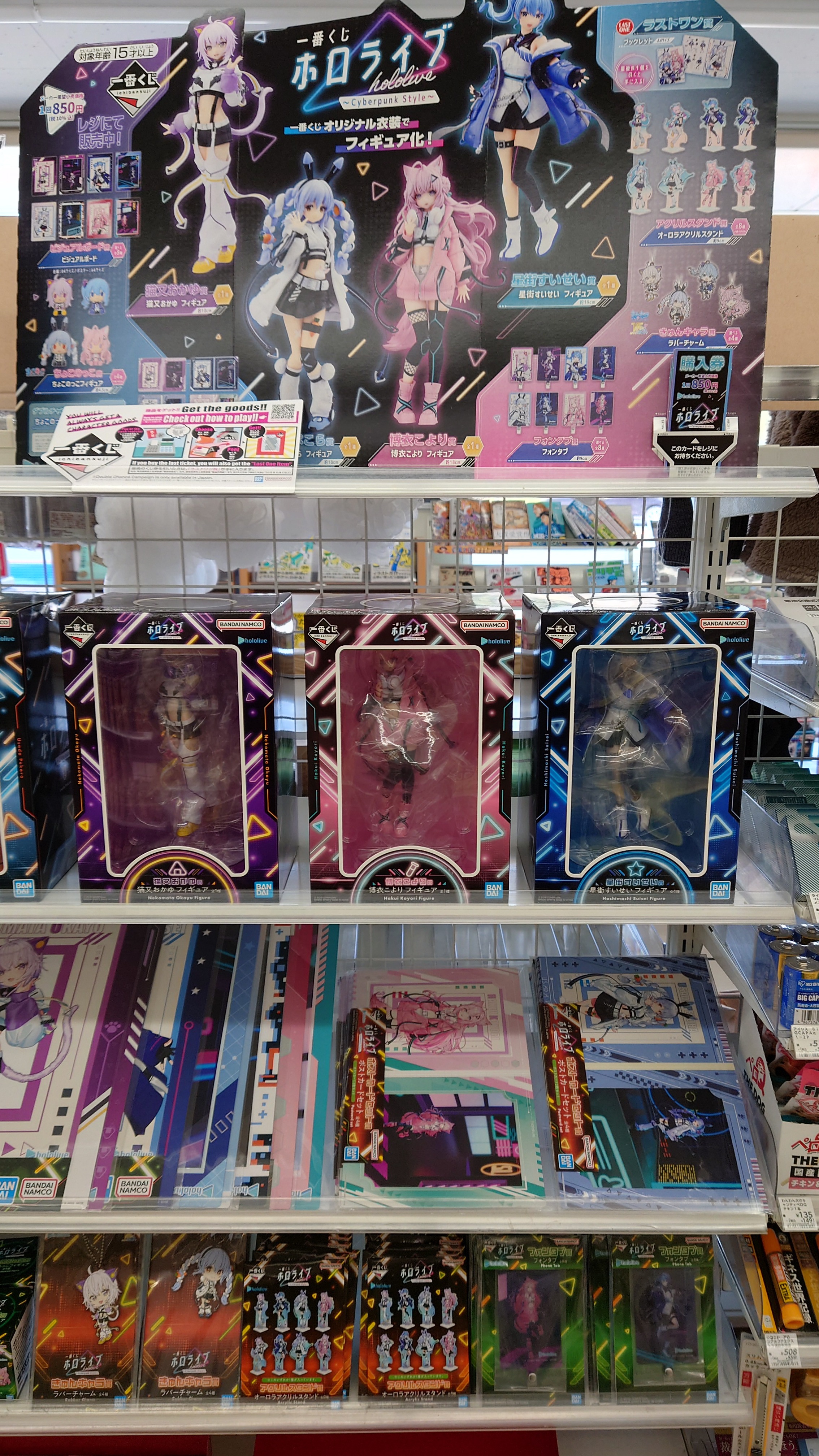 「ホロライブ ~Cyberpunk Style~」H 一番くじ P狙い星街すいせい猫又おかゆ今回のフィギュア賞は 4本/80 鬼畜仕様(# ゚Д゚)中でもすいせいがイチオシ 次いでおかゆフィギュア1体当たるまで挑戦下位賞は選べるもの多いので早めに引きたい。Lawson新谷店環境は、一本だけ引かれて 79/80フィギュア賞は無傷8回挑戦5枚目兎田ぺこら賞ぺこーらキターーーー🐰 兎田ぺこら フィギュア星街すいせい当たらず・・でも嬉しいビジュアルボード賞星街すいせいポストカードセット賞星街すいせいアクリルスタンド賞オーロラアクリルスタンド星街すいせい猫又おかゆ 兎田ぺこらきゅんキャラ賞ラバーチャーム星街すいせい 猫又おかゆ嵌ると思いきや…意外と早期決着で、散財せずに済みました~すいせい残りで良い店舗に巡り合えたら、再戦するかも…