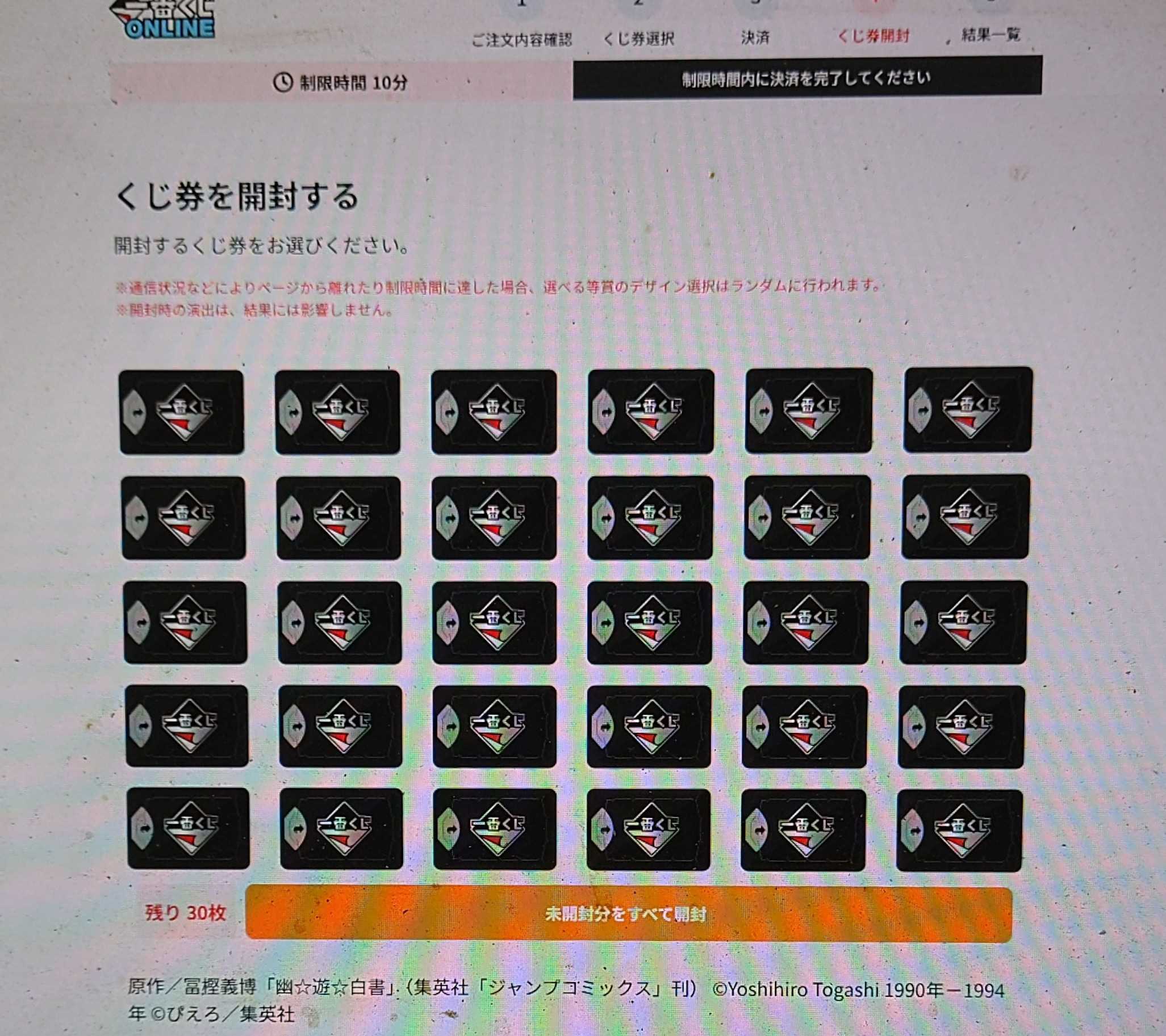 「 幽☆遊☆白書 暗黒武術会編 vol.2」ONLINE残りくじ30枚A賞0/2 B賞1/2 C賞2/2 D賞1/1 E賞6/20 F賞6/17 G賞9/18 H賞5/18B D 残っていたので、全部くださいしました。全買い!途中経過10枚引いて…C飛影前回とはポーズ違いでB鴉鴉の黒髪ロングの質感は如何に?艶々なのか?届いてからのお楽しみ残りで…アソート1本のD武威素立ちなのが、少し残念飛影 (2体目)そして ラストワン戸愚呂兄弟 MASTERLISフィギュア5/30 なので その他下位賞ESOFVICちゅ ×6Fクリアポスター ×6Gクリアファイル&ステッカー ×9Hラバーチャーム ×5丁度 上限30本で回ってきたので、ラストワンまで逝っ行っちゃいました~次回vol.3あるなら、桑原和真フィギュア化 お願いします<(_ _)>