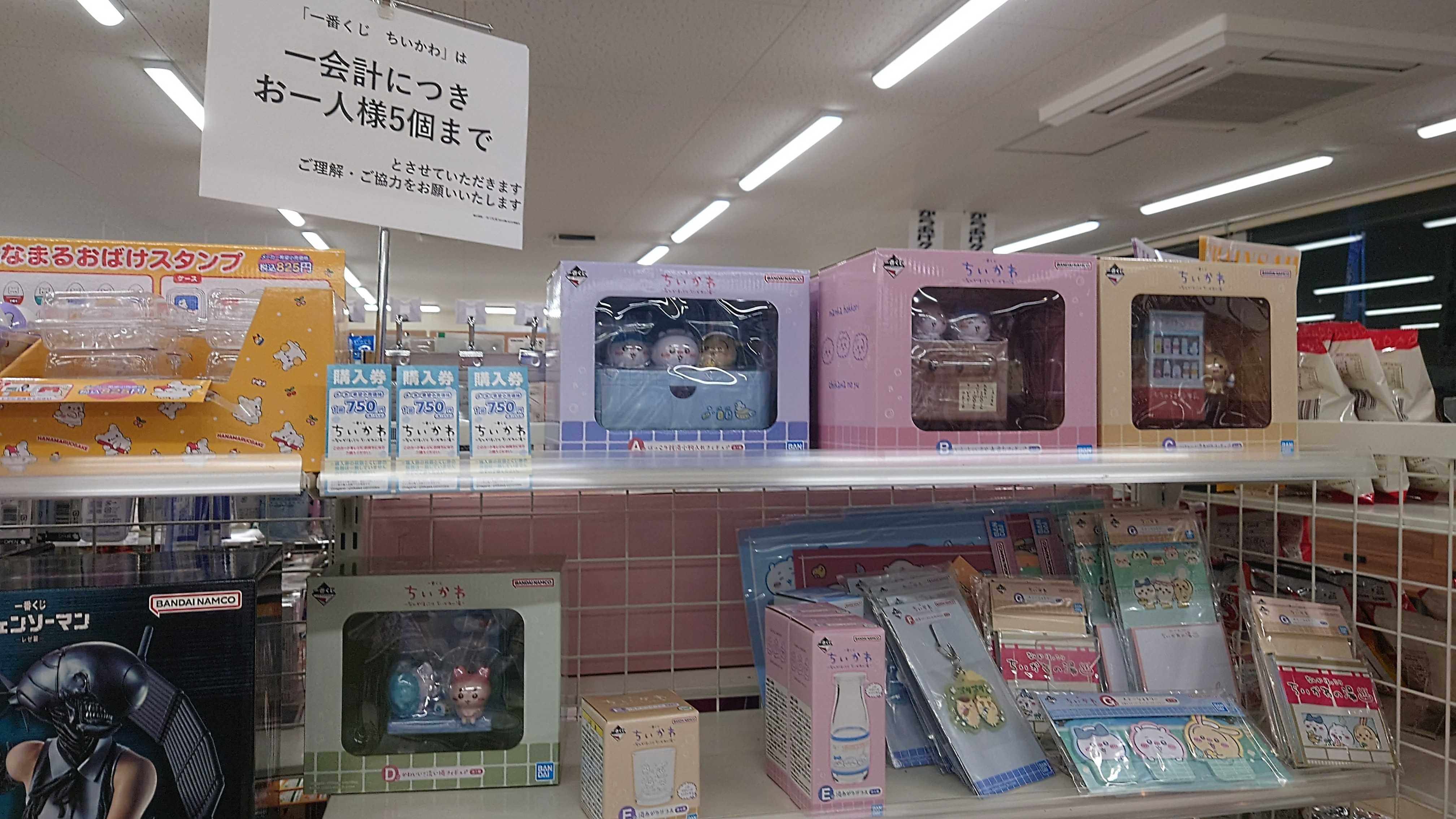 「ちいかわ ~なんかほっこり ちいかわの湯~」一番くじローソン内子五十崎インター店5回制限環境42本引かれてA×1D×1旅立ち フィギュア当選確率 約1/43回だけB賞 キターいらっしゃいませ★番台フィギュアハチワレ好きなので GステーショナリークリアファイルHファブリックコレクションジャガードタオル5回制限(並び直しNG)故の好環境フィギュア×1引けたので、ちいかわはこれにて終了明日~ベルセルク…どうしよう