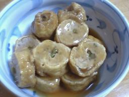 今日は何を作ろうかなぁとレシピを探していたら、私の大好きなアゲを使ったお肉料理があったので早速作ってみました♪今日の晩ご飯・鶏ひき肉の信田巻き・洋風水餃子・高野豆腐と干し椎茸の煮物(←母が作りました)・キュウリとわかめのお酢の物・きびご飯 鶏ひき肉の信田巻き信田巻きってなんで信田巻きって言うんだろう?名前が変わってますよね。…ってことで調べました!信田とは油あげを使った料理に使われる名前だそうで、名前の由来は大阪の信太の森にまつわるキツネの恩返しの説話とされ、キツネは油あげが大好物であるところから名づけられたそうです。へぇ~なるほどねぇ。いろんな信田巻きがあるみたいですが、私は鶏ひき肉を巻きました。鶏のひき肉にシソを細かく切って混ぜ、しょうが汁と塩、片栗粉を入れてよく練っておきます。茹でて油抜きした油揚げを開き、片栗粉を軽く振り、ひき肉を平たく伸ばしたら、茹でたアスパラをのせてクルクルと巻きます。巻き終わりを爪楊枝で留めておきます。それをダシ汁、お醤油、みりん、お酒、砂糖でじっくり煮たらお皿に切り分け、残りの煮汁を水溶き片栗粉でトロミづけして、上からかけたら出来上がりアスパラをたくさん入れた方が切った時にきれいです。見た目も味もとってもいい感じの一品になりましたお弁当にも洋風水餃子たくさん作って冷凍しておいた餃子の出番です!タマネギとにんじん入りのコンソメスープを作り、そこに冷凍のままの餃子を入れて煮るだけ!すっごく簡単♪しかも味もいい~ とっても美味しかったです。今日も美味しくできました、ごちそう様でした