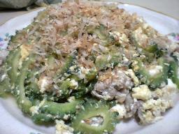 この時期になるとスーパーや八百屋さんに並びますね、ゴーヤ。近所のスーパーにも一本100円で売っていたので買ってきました今日の晩ご飯・ゴーヤチャンプルー・山いも納豆・えのきとネギのお味噌汁・黒米ご飯ゴーヤを、最初に食べた人、これが食べられる美味しいものだということを発見した人ってすごい!見た目は結構すごいですよね、ゴーヤ。ブツブツしてるし。今は味も知ってるし、美味しい食べ方も知っているけど、初めて見たら、なんかとても食べられるものには見えませんよね。ゴーヤは5ミリ位に切ったらさっと塩をかけて軽くもんで水で洗っておきます。豚肉を炒めたらゴーヤを入れ、さらに炒めたら塩とお砂糖少々で軽く味つけ。さらにお豆腐を入れて、お醤油と昆布だしの素で味付けしたら最後に溶いた卵を回し入れて出来上がり~♪熱いうちにかつお節をかけました。 これ、何人前でしょうか(笑)?たくさん出来てしまいました。明日のお昼まであるなぁ…。ゴーヤの苦味がとっても素敵私の大好きな一品です! 今日もとっても美味しいご飯を頂きました、ごちそう様でした♪