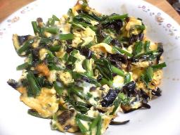 火曜日にお料理教室で作ったニラ玉。先生がとってもきれいにふわふわに出来上がっていて、なんだか私もふわふわに作ってみたくなった。で、材料は全部冷蔵庫にあったので作ってみました♪ 材料は、卵にニラにきくらげ。味付けも教室で習った通りに作ってみました。具が多すぎるでしょうか…(笑)。うーん、やっぱりふわふわニラ玉にはなかなか…写真ではわかりにくいですが、一応トロっとはしてます!でもふわふわは難しいですねぇ~。味はとっても美味しくできましたよ