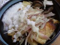 仕事で帰りが遅かったので、冷蔵庫にあるものでさっと手抜き料理になってしまいました。今日の晩ご飯・アゲとみょうがのとろろかけ・白菜とアゲの炒め煮物・ご飯 焼いたアゲに刻んだみょうがをのせて、山芋をすってかけただけの簡単一品。ぽん酢でさっぱり頂きましたが、組み合わせが微妙でした…でもツルっとあっさり頂きました♪炒め煮は母がさっと作ってくれました 甘辛いお醤油味でなんだかとっても美味しかった~お母さんありがとう今日も美味しく頂きました、ご馳走様でした。