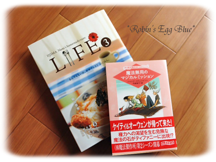 昨日、待っていた本が届きました。嬉しい~(*>▽<).+*゜本屋さんを覗いては、なかなか見つけられずにいた本を2つ。ええい、これはネットで注文だぁっ!っとポチリとしてから、えっ。もう届いたの?という、しかも受け取りやすい時間にスルリと届いてくれました。ほぼ日ブックスの、『LIFE3~なんでもない日、おめでとう!のごはん。』、もう1冊は、(株)魔法製作所の第2幕、『魔法無用のマジカルミッション』です。飯島奈美さんのお料理の本、『LIFE』シリーズの3作目。(〃^ー^〃)絶対に全部そろえようと思っていたのに、どういう訳か買いそびれていたのでした。最近、胃を悪くしてから、スープをレシピを見ながら作っていたのですが、これが!レシピ本を見ながら美味しいものに挑戦するのが楽しくて他にも色々と、お料理上手になりたいなぁ、っという憧れが湧いてきたのでした。(*v.v).+*゜毎日のごはんにも、もちろん、ふるまうお料理にも、シアワセを込めて。そういう気持ちで作ってゆきたいなぁ!美味しいもののことを考えて、ワクワクしているところです。(笑)胃の調子が完ぺきになったら、絶対挑戦したいのが、麻婆豆腐。これは、あっさり棒棒鶏つき。とあって、どういうコトなのかと思ったら。。なるほど。。。これは、本格的!\(◎o◎)/!鶏でスープを取るから、棒棒鶏がつくというコトのようです。こういうお料理が作れたら!カッコいいなぁ!憧れる~!そして、楽しみドキドキです。(*´ー`*人)。・:*:・(少々、興奮気味です。・笑)そして、『魔法無用のマジカルミッション』。シリーズもののお話で、続きが気になっていて。.+*゜これもまた、すごーく楽しみにしていた本です。お話の設定、素敵かわいくて大好きです。("▽"♪.+*゜ニューヨークにある、魔法を扱う株式会社での事件(!!)の、お話です。場所がリアル。でも、お話はファンタジー、というところがまた面白くて、ドキドキ感を膨らませてくれます。.+*゜主人公の女の子ケイティと、そのボーイフレンドのオーウェンとの会話や、ちょっとしたやり取りがすごく良い雰囲気で!しかも、心地よく洒落ていて大好きなのです。(*´ー`*人).+*゜2人間の、お互いをすごく大切にしつつの、良い距離感に本当に憧れます。私も、そんな風になりたいなぁ。(*v.v)まだ読み始めたばかりなので、これからのストーリーが楽しみです。(〃^ー^〃)こちらは、新しい本が届くまで、ずーっとハマっていた本。というかマンガです♪こちらもまた、もうすっかり大ファンです。(*v.v).+*゜