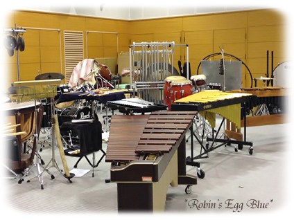 楽器のお仕事現場のワンシーン.+*゜楽器指導に行かせて頂いている所の練習風景です。(〃^ー^〃)あっ。正確には休憩中。(笑)たくさんの楽器を並べております。+.(*・∀・)゚+.゚本当は正面から撮りたかったのですが、部屋をパーテーションで区切ってしまったので、こんな写真に。(汗;木琴や鉄琴、ドラム、様々な打楽器を組み合わせた曲。パーカッションアンサンブルの練習中です。(*>▽<)タイトルにある奇跡とは.+*゜何しろ、沢山の楽器が集まった幸せが本当に奇跡!!いくつもの楽器を、他の団体さんや楽器屋さんからお借りしているのです.+*゜この編成の、この楽曲を奏でられること自体が、まさに奇跡的。もちろん、学生さん達が、一生懸命調べたり連絡したりした賜物なのですけれども、それにしても!驚きのペースで、するりと集まって来てくれたように思えて.+*゜不思議と偶然が混ざったみたいな感じで、改めて思うととても驚きです。何だか、本当にシアワセです。(*v.v).+*゜皆で喜んで練習中です。(〃^▽^〃)さらにこの日、新たに追加でお借りすることになったタイゴング。真ん中の丸いところがポコンと膨らんでいるのですが、それをバチで叩きます。コワ~ンと、アジアンな異世界な雰囲気の音がします。実は私が学生の頃、この楽器をヘソゴングと呼んでいたことを思い出しました。。。。(笑)。。まぁ確かにヘソのようです。今の学生さん達には、秘密ってことにしておこう。(笑)(* ̄¬ ̄)フハハところで、この曲の持つ雰囲気はというと不思議系の空間の中で、お洒落ジャズをしている様な感じ(んー、かなりざっくりな表現ですけれども☆(*^^;)音を奏でる。と、そこに独特の空間が現れる.+*゜演奏者のそれぞれの音のカラーが見え隠れして、いろんな色にグラデーションしてゆくみたいな感じも興味深いです。(〃^ー^〃)ウチに帰ってきてから、喜び勇んで(笑)旦那さんに写真を見てもらったところ、「ぉー。ハードル上げちゃったね?(笑)」と一言。o(__)o彡_☆まさに。要するに演奏の具合のハードルが上がったところではございますが(TT)メンバーの皆と、私もちゃっかり楽しんでしまう決意で(笑)、また次の練習へ向かおうと思います。.+*゜頑張るぞーいや、頑張ってもらうぞーo(〃^▽^〃)oフハハハハー。。失礼しました。* m( _ _ )m *
