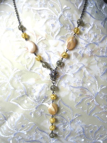 ずーっと以前、秋前に作ったロングネックレスのモチーフとして作った一部のお花長身の私でも、ちょっと自分でも長すぎたので2個とっていましたでも分解する気力はなく(笑)もったいないなぁ・・・とプチネックレスにしちゃいました。\(\◇ ̄ )ヘン~(  ̄▽/)ゝシン!!! \(○ `O´ ○)/トゥーー!!下に天然石のロードナイトとグリーンアベンチュリンもつけてみました色違いで、グリーンラスターと茶のラスターがかったチェコボタンです各チェーンはアンティークブロンズ(40cm)です 久々にビーズをちょこっと触ってリハビリしました*ろびん*ショップにも出しちゃいま~すポチッとランキングも宜しくです ←*ろびん*ショップです ← 参加しています。 ポチッ とお願いします。