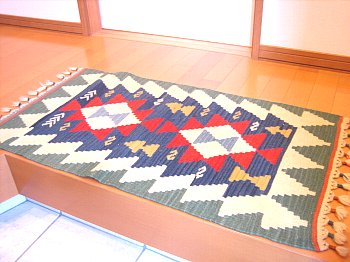 家を建てて3年。私より先に結婚し、家を買った友達から言われていました。「カーテン30、照明30はいるで~」と・・・本当にいりました。当時は諭吉様がとんでもない単位で飛んでいきましたま、最初にいいものを買っておけば長持ちするよという長老の意見も取り入れつつ、懐を計算しつつ(爆笑)なんとか揃えましたが、私は根本的にごちゃっとしたのが苦手すっきりしているのが掃除もしやすいし、無駄なものを買わなくてすむ・・・とかとか思うしかし・・・我が家は殺風景だ。( ̄へ ̄|||) ウームカーテンをオーダーした店に【キリム】という絨毯やマットがありました。あちゃらの手織りで一つとして同じ物はないそうで、ゆがみなども【味】です(笑)で、【キリム】はだいたいに豊作や魔よけという意味が織り込んであるらしいので、とても気になっていました。がぁ~高い!ネットでしらべたり、オークションを見ていてとある店を発見家に彩を~と一枚のつもりがついつい4枚買ってしまいました玄関マットにしましたなんとなく明るくなったわんこの【S】が魔よけらしいですよ本当は玄関入り口の白い壁につける予定ですが、壁に問題ありでまだつけてません女の人が腰に手をあてている姿らしく、魔よけの意味もあるそうです結構お気に入りで、ベッドサイドにおいてみました上の目ん玉みたいなのがトルコの魔よけらしいです。貰いました全て同一店で買いましたが、関西人・・・そこは・・・しっかり・・・でもネットでは無理だと思いますが、いける範囲の店だったのですオオーw(*゜o゜*)w大きなラグもよかったのですがン万円するので・・・ちょっとあきらめました綺麗だったなぁ~今回は私の手作りではないですが(笑)手作り品を買いました日記でしたポチッとランキングも宜しくです ←*ろびん*ショップです ← 参加しています。 ポチッ とお願いします。