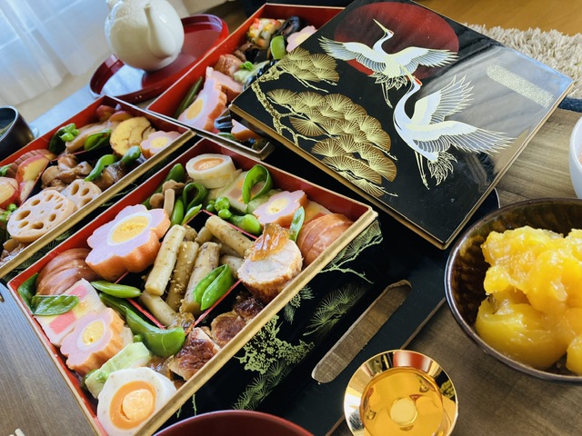 遅ればせながら…新年あけまして おめでとうございます。今年のお正月は、手術後の痛みとの闘い→同室者やストーカーのような不審者のいた…病院での苦悩続きの入院生活からも解放されて…。(詳しくは…またの機会に…。)ようやく…ゆっくりとお正月を自宅で、穏やかに…安心して…過ごせるものと思っていましたが…。やはり術後で…腰に負担をかけずに、コルセットを装着したままの…寒い中での生活は、なかなか慣れるまでが…大変でした。➼「大学病院での整形外科初診→MRI検査で手術をタイミングよく決意///2024」11月14日2023年も…とんでもないお正月で…。➼「正月の休日診療探し→救急外来で点滴を受ける夫の帯状疱疹///2023」➼「しもやけを侮るなかれ///年末年始の足趾凍傷の苦痛→外反母趾の運動」昨年2024年は…元旦の16:10に、震度7(M7.6)の令和6年能登半島地震が起こり…。(阪神・淡路大震災のM7.3の3倍以上のエネルギーだったそう…)2024年1月2日翌日1月2日は、その地震の…道路の寸断・家屋の倒壊や停電・断水と、深刻な被害状況が明らかになっていき…。初詣から帰ってくるなり…JAL(日航機)と海保機の衝突炎上事故と、衝撃的なニュースが入ってきて…心配と哀しみで不安だらけで…。➼「冷静な2024年へ…afterコロナに命の尊さ感じるお正月」コロナ禍以降は…年々変化することが多い中、全く変わらず…恒例のお正月の行事ができるだけで、幸せなことだと実感したりもしました。昨年2024年の初詣では、コロナ後の反動のように…近隣のお寺では…多くの人の長い行列で、石の階段で1時間ほども並び…足の冷たさを感じながら、お詣りしたり…混雑していたので…。今年2025年は、病み上がりの上…インフルエンザの感染のリスクもあり、今年は私は初詣には行かず…夫が初めて一人だけで参拝に行きました。案の定…夫の撮影してきた写真では、見ているだけで…寒くなりそうな程、人混みと行列ができていて…行かなくて良かったと思ったりも。また、今年の2025年の年神様を迎える為の…お正月の飾りは、ほぼ夫が買ってきたもので…準備。毎年恒例の詰め合わせ御節は、なんとか頑張って…作り?!詰めましたので、今年のお正月の記録として…書き残しておきたいと思います。 備忘録としても残しておきたく、今回も長くなってしまいましたが…。お時間&関心がありましたら…気になるタイトル記事だけでも、おつき合い下さると嬉しいです。今年の目標も…ブログを簡単に綴ることでもあるのですが、次回からに…。--------------------------------正月飾り--------------------------------■ しめ縄毎年年末(12月30日)に行う…お餅つきの帰り(今年は挨拶だけ)に、実家でもらってきた…父手作りのしめ縄。今年も作って貰えたことに感謝。(藁も自家製…)作り方にも、色々あって…きっちり編む方法は難しく、この父の作り方は簡単な方だと…母が電話で話していましたが…。今年の干支の巳の蛇🐍のように、例年より…にょろーと長くなっているのが、自然な藁の雰囲気があっていいように感じたりも。年末に実家に行けないかもと…夫がスーパーで買ってきた、しっかりした造りのしめ縄は…キッチンに飾りました。日の出を迎える…この先に、奈良の若草山やその麓の東大寺に春日大社もあり…。初詣に行けない…今年は、ここにしめ縄を飾り参拝するように祈るのもありかなと考えたりも。■ お雑煮のお餅鏡餅やお正月に食べるお餅は、10年以上前から私の姉・弟家族が実家に集まって…杵と石臼でお餅つきをしていましたが…。コロナ禍中の…2020・2021・2022年末のお餅つきは参加せず、2023年12月30日に…4年ぶりにわが家も加わり…4家族12人(子どもは6人)が集まり、久々に賑やかなお餅つきができました…。ですが…昨年2024年は、案の定…わが家は参加せず…終わってから実家へあいさつに行った程度ですが、退院後…元気な顔を見せてくれたと喜んでくれました。結局…弟夫婦は仕事で、姉家族の兄姉妹3人と幼い姪っ子3人と、高齢の両親で…白餅だけを2回するだけのお餅つきをに変更されていました。千本杵(せんぼんきね)だけは、毎年子どもたちも楽しみにしているので…実施したようですが、もち米の少し米の形が残るお餅を…今年はお雑煮に焼いて入れました。(写真は撮り忘れ…)また、そのお餅つきと同時に、お年賀のようなお酒やカレンダーやお菓子やお年玉を実家だけでなく…その他の親戚や知り合いへとサッと届けて…。その代わりに、実家の畑で採れた…お雑煮使うダイコンやお漬物に、このしめ縄を受け取るように貰い…仕事から偶然帰ってきていた弟夫婦とも、久々に会話できてよかったなと思っています。昨年2024年 正月花■ お正月花ここ数年…お正月花は、実家を訪れた帰りに…道の駅に立ち寄り、好きな切り花を購入し…飾っていましたが…。昨年末は、前屈みになれないので…選んで購入する余裕…購入してからの水替えや切り戻すことも大変かなと購入せず終いで…。11月18日