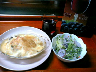 グラタンは、玉葱が飴色になるまで炒め、小麦粉を加えてさらに焦がさないようによく炒め、牛乳を加えてだまにならない様にのばします・・・